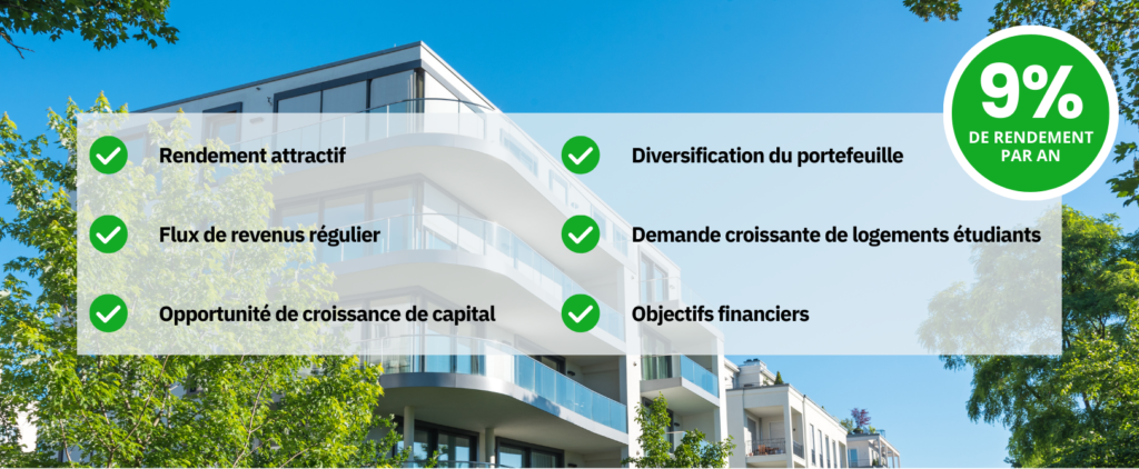 En outre, la gestion relativement simple et les flux de revenus prévisibles font de l’investissement dans une résidence étudiante une option lucrative pour diversifier un portefeuille immobilier.